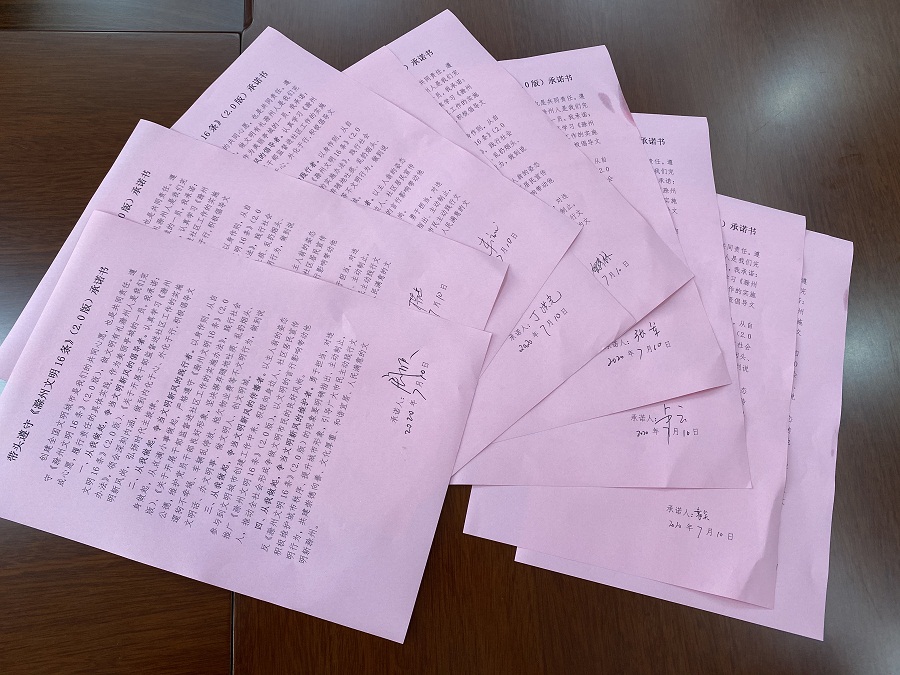揚子集團黨員干部及全體職工利用微信工作群認真學習《滁州文明16條(2.0版)》)并簽訂了《帶頭遵守〈滁州文明16條〉(2.0版)承諾書》,爭做模范遵守、帶頭踐行的表率,從自身做起,講文明、樹新風,積極勸導不文明行為,號召更多人養成健康科學的生活習慣,展現新時代精神面貌,為推進全國文明城市創建、培育文明新風尚貢獻力量。